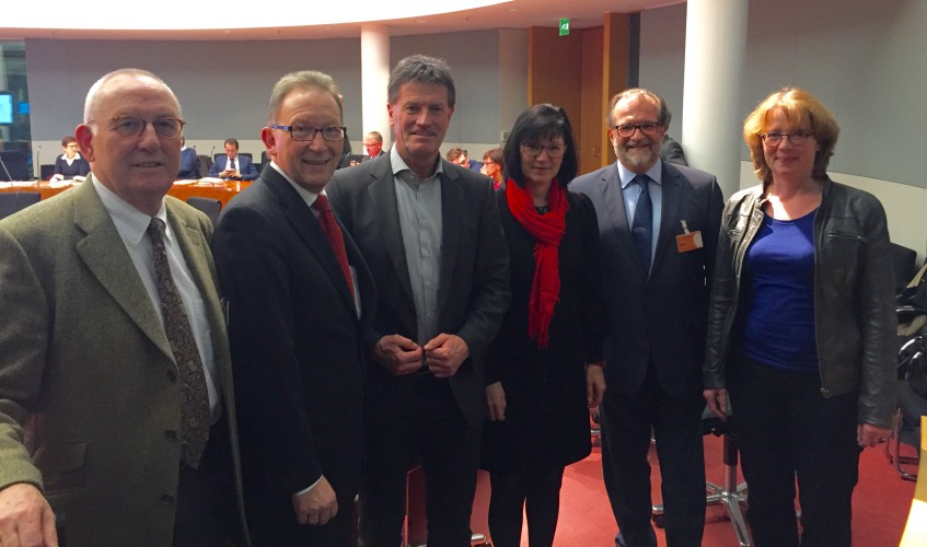 v.l.n.r. : Gerd Kirchhoff, spokesman CI against traffic noise; Erwin Rüddel, MP; Detlev pilgrims MP; Ines Jahnel, noise protection officers of DB AG; Jürgen Tuscher, Managing VPI; Tabea Rößner, MP